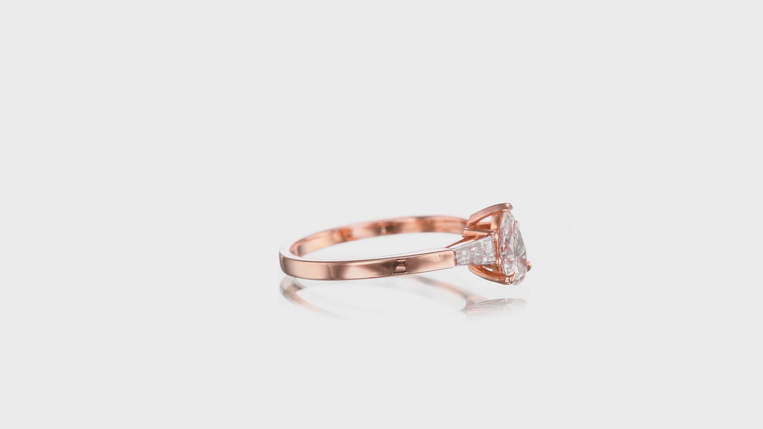 טבעת בשיבוץ יהלום טיפה ושיבוץ צדדיות טייפר. אבן הטיפה יושבת במרכז לצדי טייפר. טבעת מיוחדת עם עיצוב מעניין ועדין.